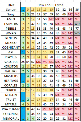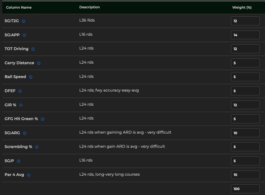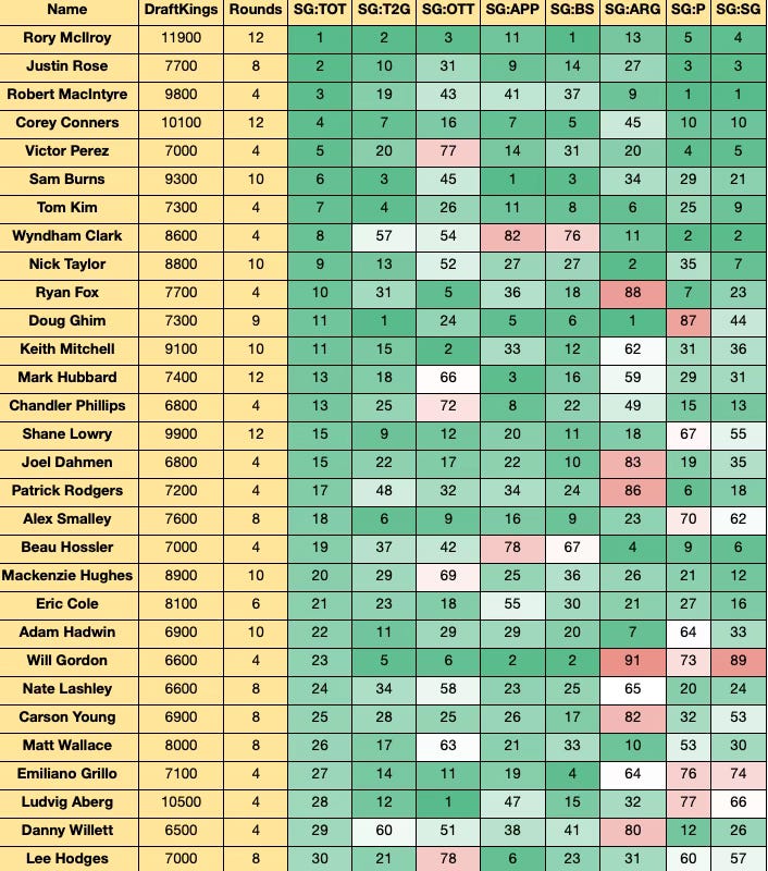 There are better numbers out there for outrights, but in taking the each way, I am sacrificing some of the outright odds for better Top 10 odds (which 1/5 of the outright odds in these instances)