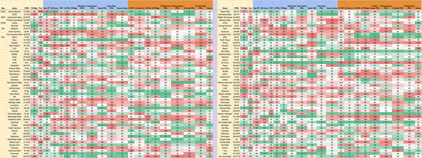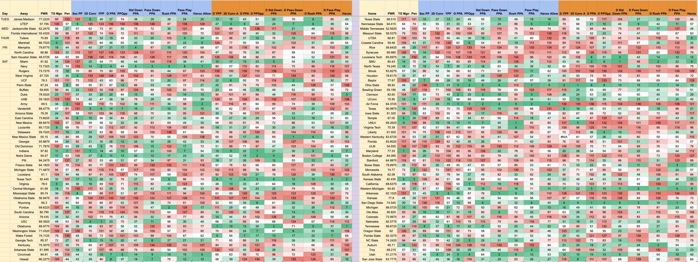 2025 Week 10 CFB - Power Ratings, Stat Worksheet, Projected Spreads, Early Picks & more