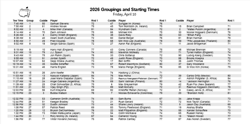 2026 Masters Tournament - Round 1 Recap, Round 2 Buys, Sells and Bets