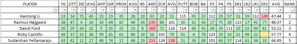 Strokes Gained: Total (Very Easy - Easy)