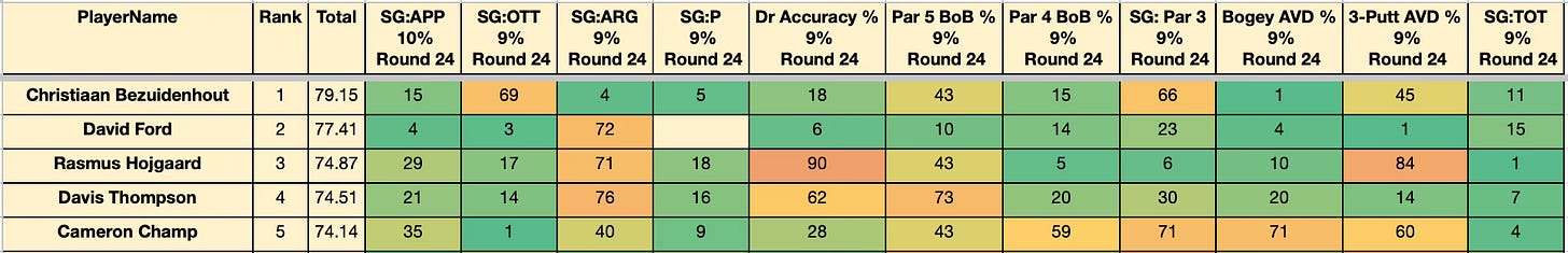 BOB% above Tour average and Bogey Avoidance lower than Tour average