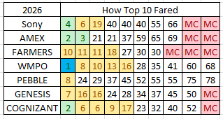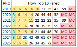 3/5 (60%) with at least 2 Top 40 finishes in their last 4 starts
