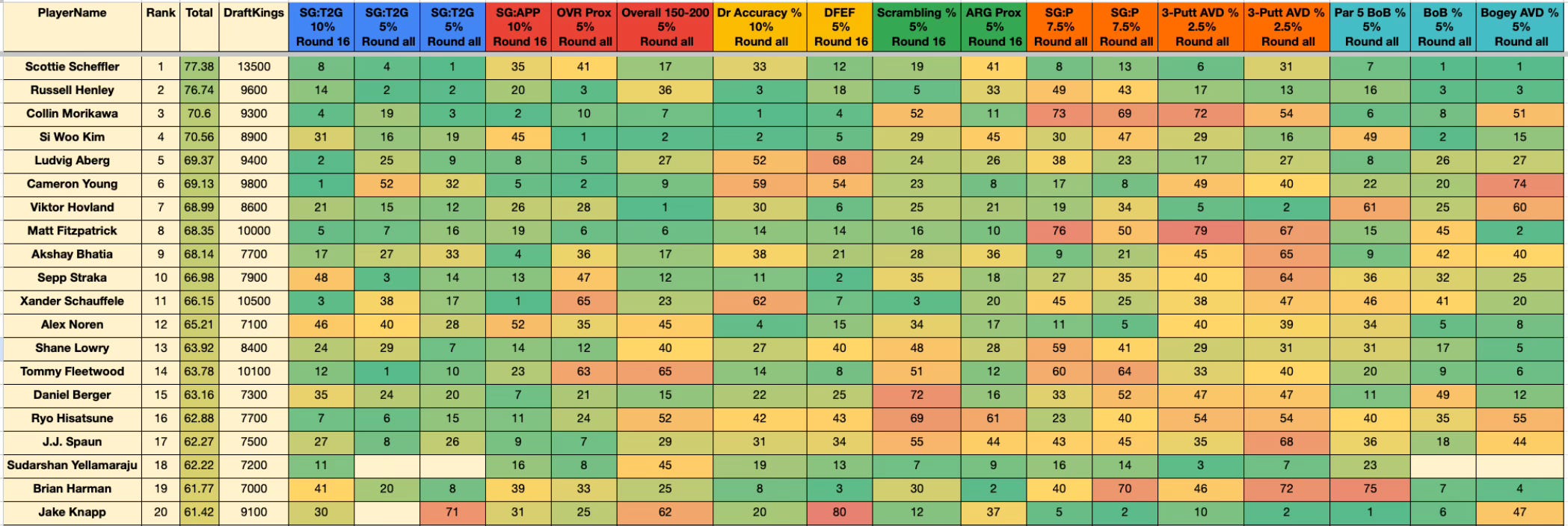 For full model, follow this link to Sammy’s Google Sheet, where all of his models will be uploaded throughout the week