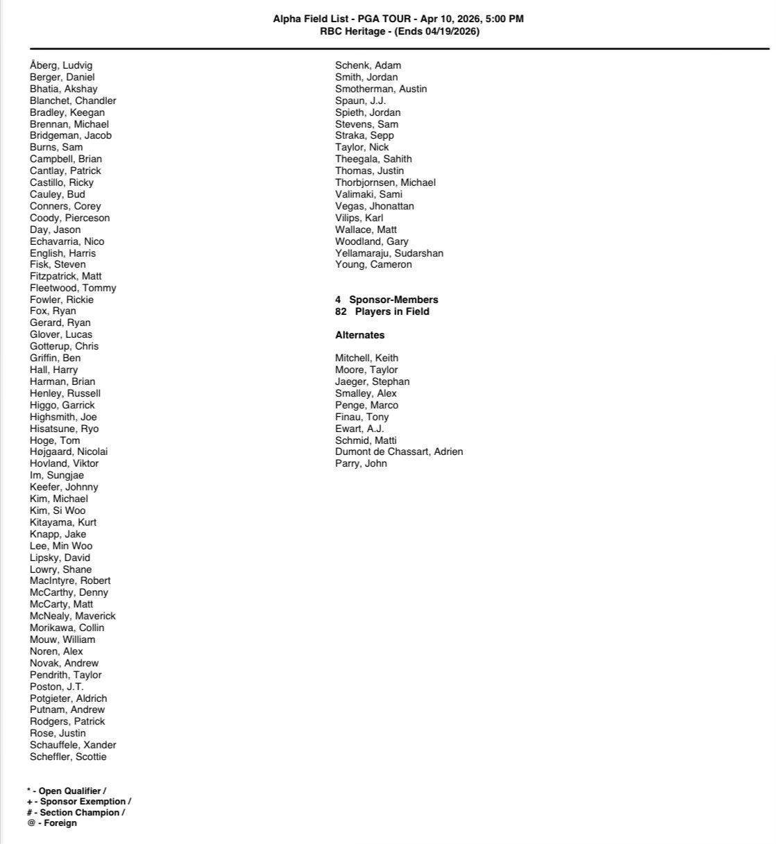 82 players, no cut