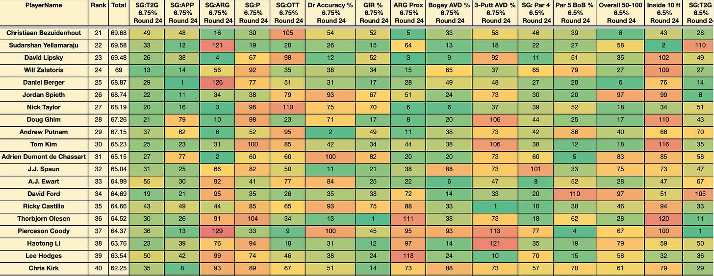 5/6 (83%) with at least 2 Top 35 finishes in their last 4 starts