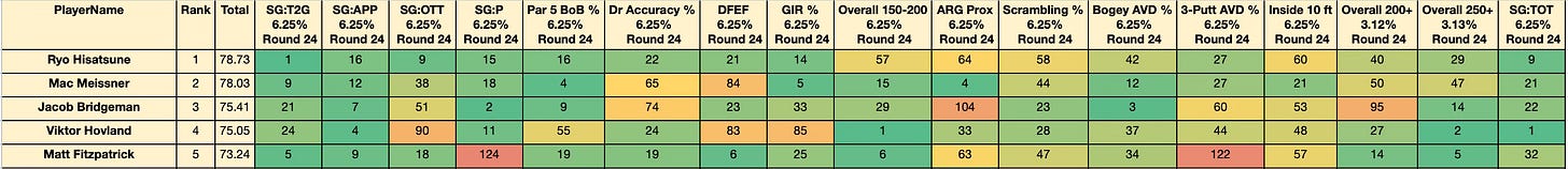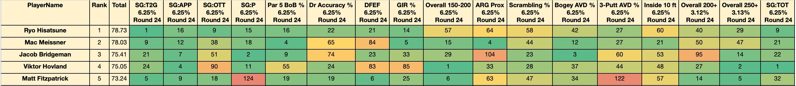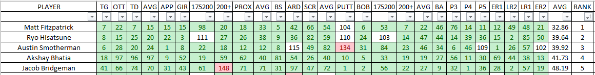Desired player profile: Accurate driver (to avoid trees/water/bunkers) with dialed mid-to-long irons and spike upside on the greens