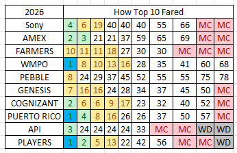 4/6 (67%) with 2 Top 40 finishes in prior appearances