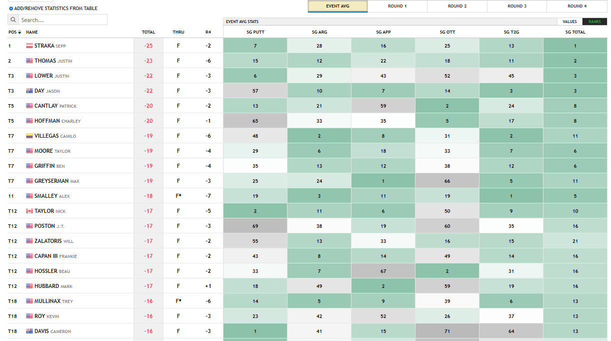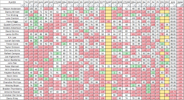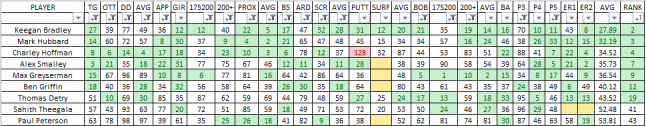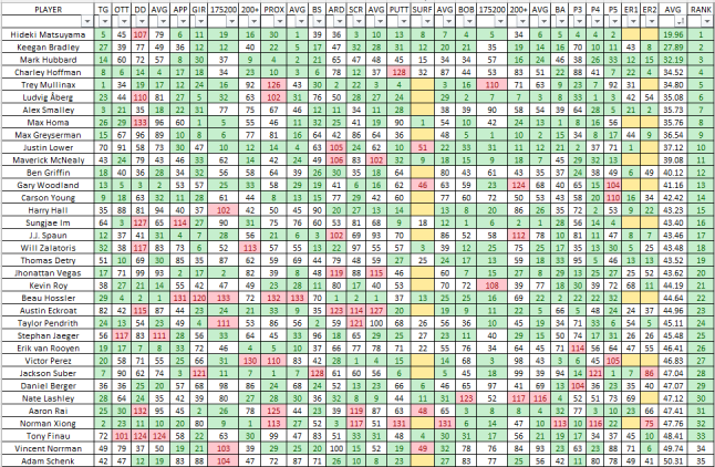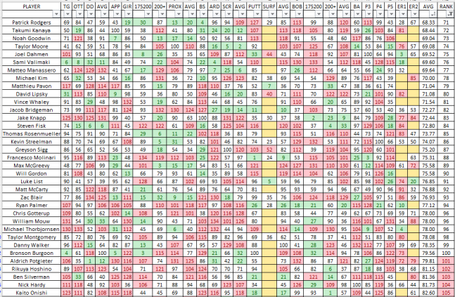 Top Strokes Gained Leaders at the American Express via DataGolf.com