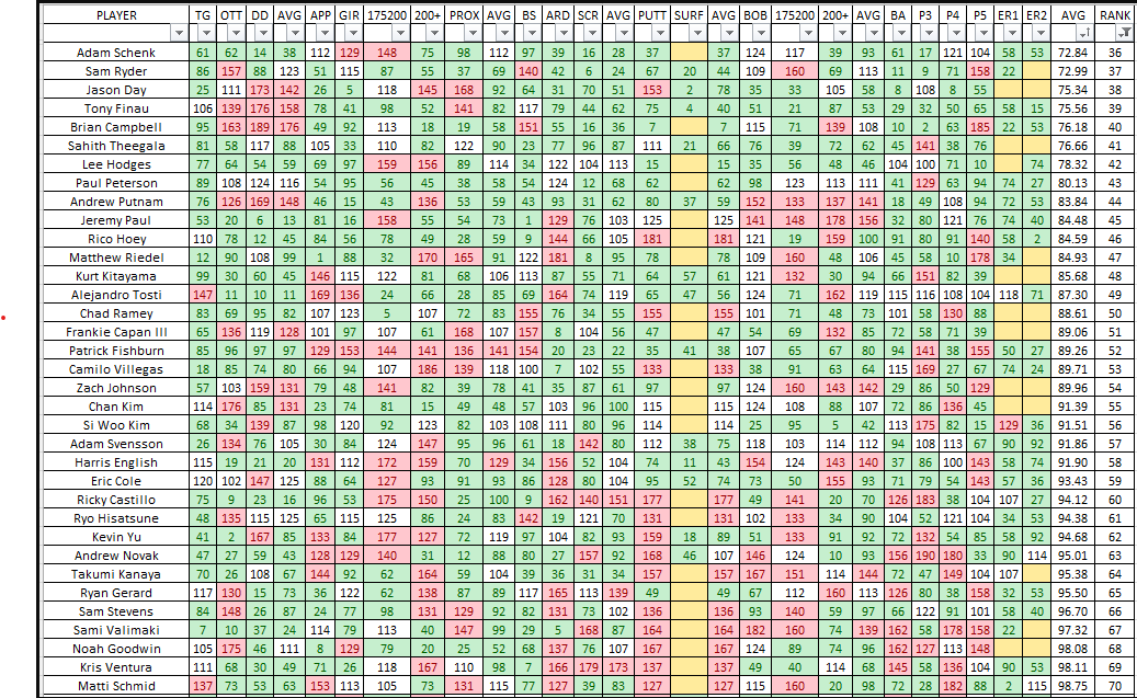 -Top 5 in field in scrambling from long rough last 30 rounds (key if missing greens)