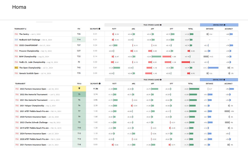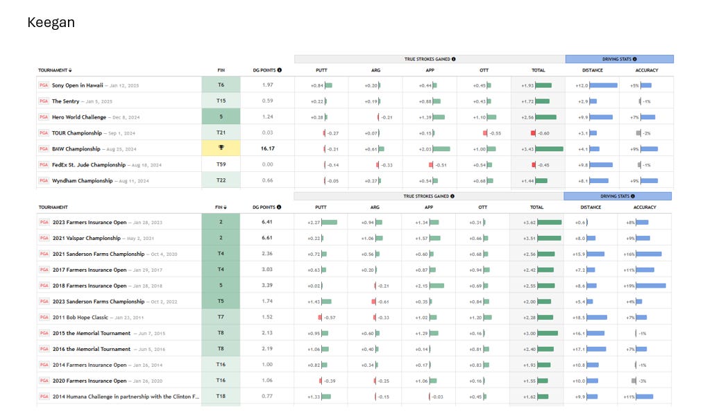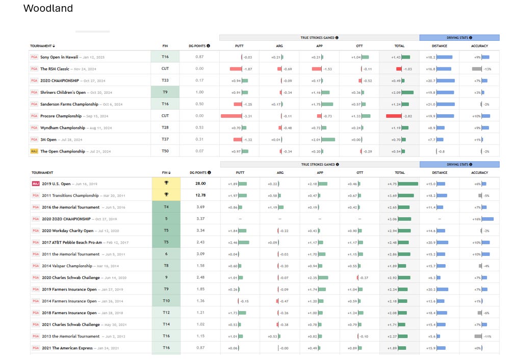 -Top 25 in Approach L16 rounds (good form), long irons don’t kill him
