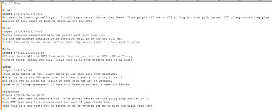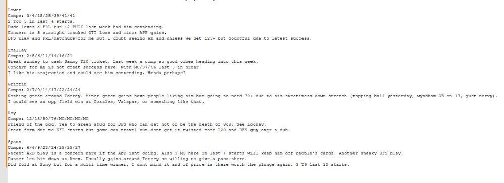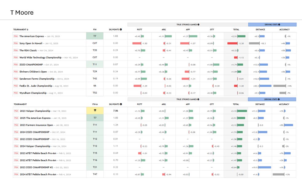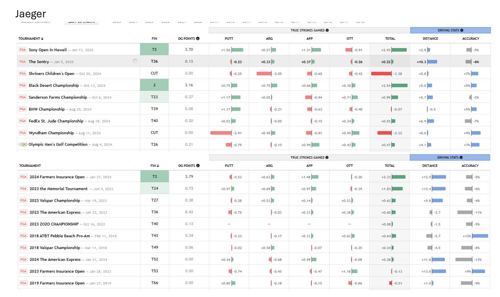 -Either in the mix or finishes near the cut line, so at 60/1 i really like what he brings to the table as far as his ceiling is concerned