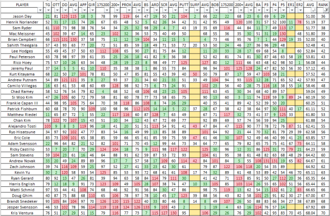 -26th in field in Approach 150-200, 20th in 200-250 (long irons are an asset)