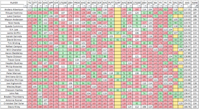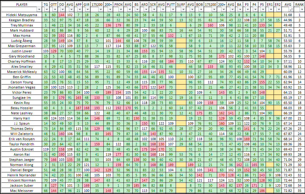 -Top 20 in Par 5 scoring on long courses (all of this is correlated)
