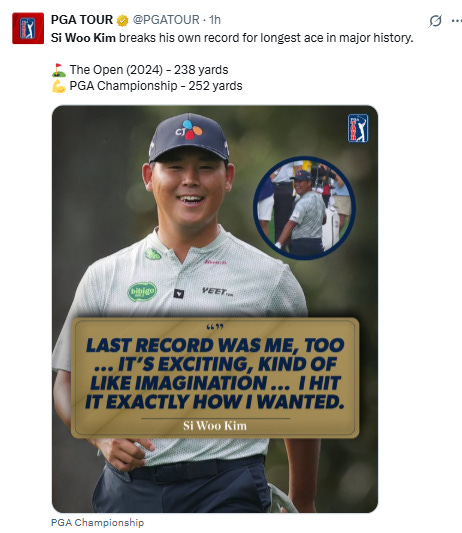 Clubhouse Shout Outs to Max Homa and Si Woo Kim who both shot the low rounds of the day (-7/64) on the back of a near Hole in One on the Par 4 14th for Max just to be outdone by SWK who made the LONGEST Hole in One in Major Championship History at 252 Yards on the Par 3 6th. Incredible!