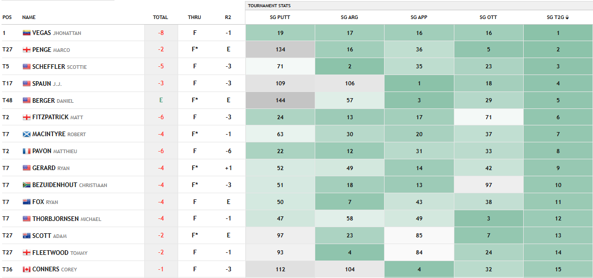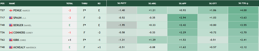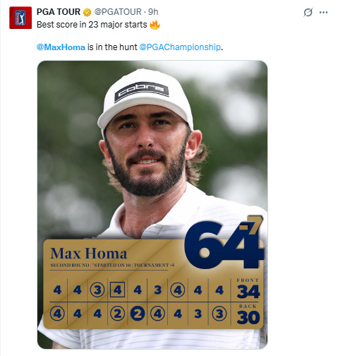 Speaking of Xander, he and Rory sort of labored around the course at various points today. It was somewhat surprising to see them so close to the cut line considering both have such decorated histories at this course. Unsurprising to see was Scottie being Scottie. Despite not having any experience at Quail Hollow outside of the 2022 Presidents Cup, Scottie shot a cool 68 and is squarely in the mix to lift the Wanamaker Trophy on Sunday. Outside of a few missed putts like the ones on #10 and #17, Scottie didn’t show much emotion today and was seemingly in control of his game all day.