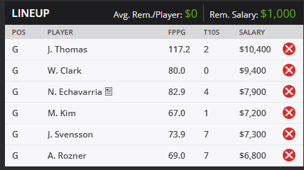 Jesper Svensson, Euro rookie, coming off T10 at Sony and 4 T10 last 11 starts is someone to not only keep an eye on this week but over the season as well if he continues to be in the low 7K range.