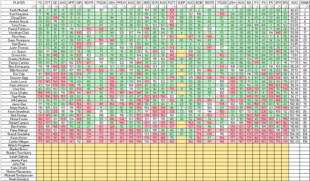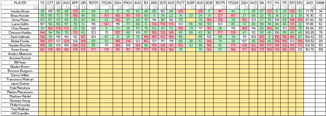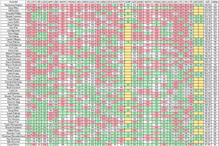 You can get pretty granular with these golf stats in your models, but since this tournament is somewhat of a lottery given the multi-course rotation and the history of longshots winning, I’ve settled on a few key stats that I feel are most important for success this week, without getting TOO deep in the weeds: