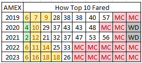 I put both on here due to the small sample size from the current season. I also will say my model has not exactly been spot on for the American Express, which makes sense do it’s wacky nature (3 courses, 54 holes cut, etc). I recommend a lighter than normal week and save up some of your bankroll for the next week where the model has been straight fire at one of my favorite courses to bet, Torrey Pines. For tracking purposes, I will be using CURRENT SEASON stats Top 10.