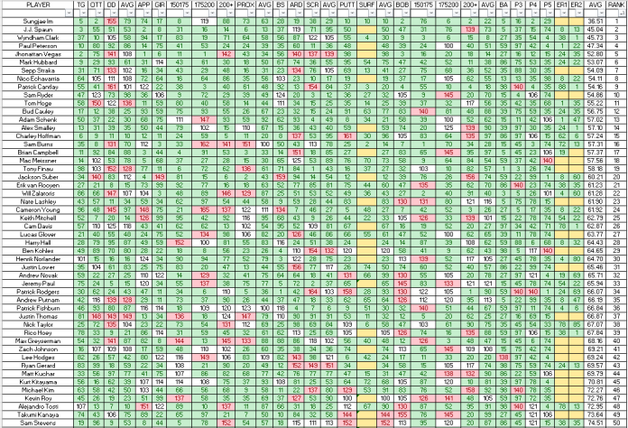 Key stats to look are Approach, Putting, and Birdies or Better.