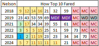 Top Nelson Finishes: MC (71-76, lost 3.29 putting)