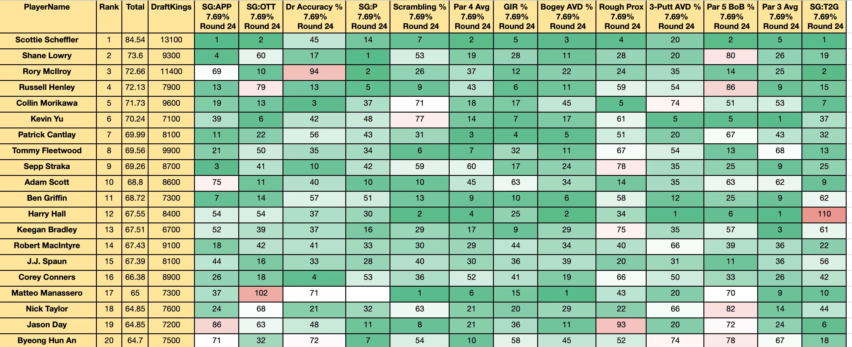 All metrics lower/worse than Tour average (aka DIFFICULT)